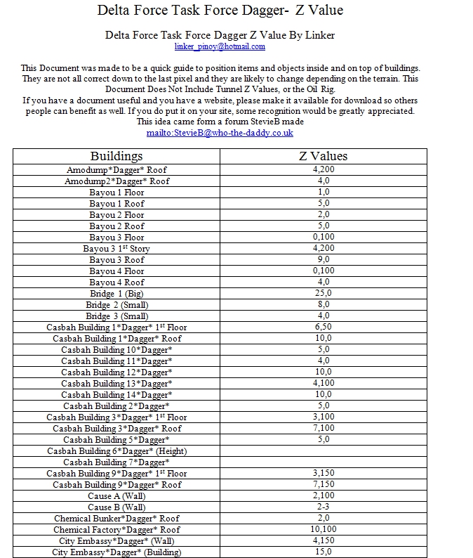 Excellent HTML/Flash based object viewing tool. Includes all terrains, almost all objects, buildings, vehicles, people, tunnel sections, oil rig components, skies, ~300 z- values for stacking, and a real time color picker for fog which gives RGB and Hex color values. Very useful! Includes installer and uninstaller.