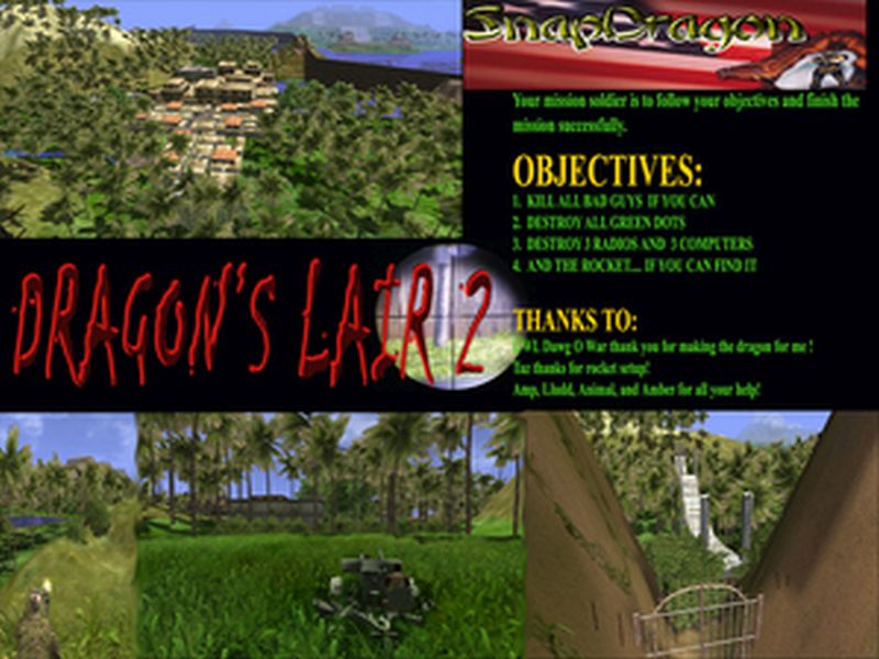 This a two part map. For those mapmakers out there familiar with Liquid maps you will understand why it is a two-parter. Mission is a rescue and destroy. Our bird was shout down on recon, find and bring our boys home at all cost, than find what they are hiding and DESTROY all!! Be on your toes the bad guys are vary hot!. AMP thank you for the bird scrip !!!!