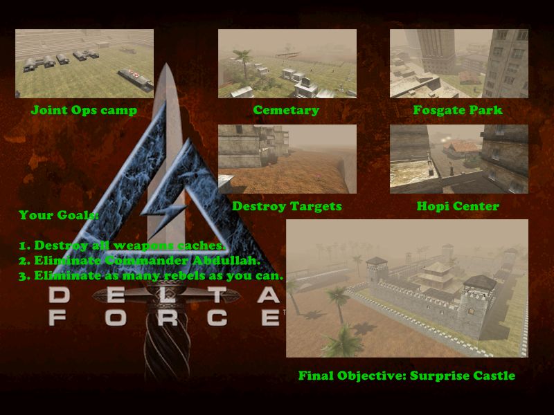 Delta has a confirmed position on a facility in a remote, mountanous region of the country. Based on information that we have gathered from your previous operations in the area, we know that this facility is a major waypoint for smuggling activities in the region. Satellite surveillance also suggests that the smugglers may have recently received large shipments of stolen Soviet weapons and equipment, which may or may not include chemical WMD materials. If these WMDs do indeed exist, we cannot allow them to be resold or used against military personnel or civilians. It is essential that Delta operatives move into the base, confirm the existence and placement of the WMD materials, and destroy them. It is also essential that we gather additional information on the source of these weapons, the man referred to as the 'Desert Rat.' Given the extremely remote location, the criminals seem to be relying on secrecy rather than heavy defenses, and this represents our single best chance to identify and destroy these weapons before they can be moved again.