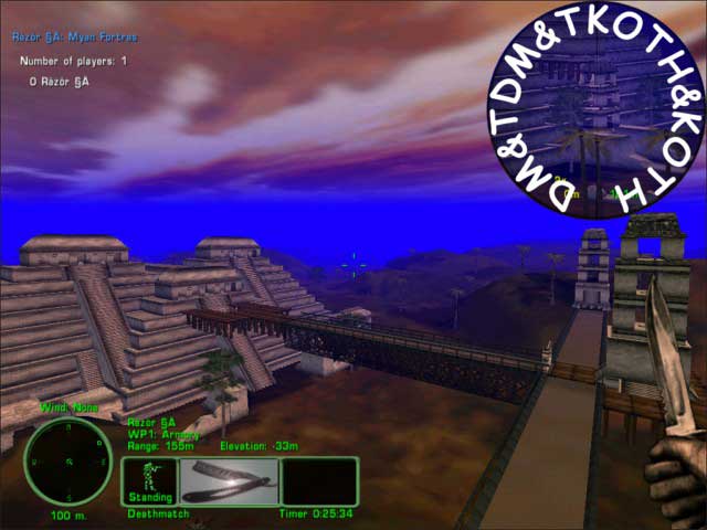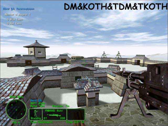 REVENGE ! Is what you'll have while repeatedly spawning behind the enemy. Three double guard towers and three bridges lead you into the battle zone. Aerial respawns and land mines add to the carnage as, this map offers close quarters battle, as well as, multiple unique sniper opportunities.... that is if you know were to find them! This map should be a lot of fun for all Death Match enthusiasts. Enjoy!!..........STRAIGHT RAZOR...... DFB STAFF.
