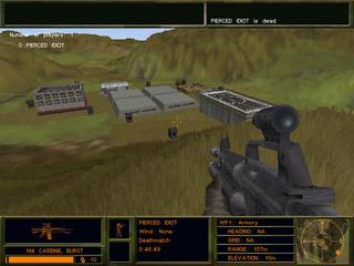 This is a Death Match and / or Team Death Match. The setting is a valley of hills, this makes for some good sniping. Two armories for you to chose from but you may need to fight your way to them. There are some distinct advantages to each teams base. You will have to discover them for yourself though. Good Luck!