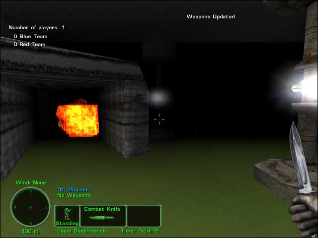 Updated 06 JAN 06.. The GWL Fire in sky causing lag has been removed. Enjoy the game! This Coop Game was inspired by the Vegas Bear's V-Box which we though was great coop game. Nice one Vegas Bear! Unfortunately, we could not get it to work I think due to the JO updates that changed the ssn numbers of all the objects. It was in BMS and there is not converter for BMS to MIS for JO yet so we were unable to go in and correct the files so it would work. That is when we decided to make our own version based on V-Box. You will see this is not copy even if there may seem to be some simularities. Situation... Your team is aroused out of their racks by the sound of gunfire and explosions. Then you realize your base has been taken over by enemy forces. You Mission is to take it back and the only way out is through the enemy. Good Luck and good hunting! Note: You team should carry a mix of weapons and have at least one medic.