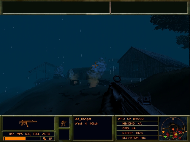 In a multinational airfield interdiction, your SAS squad will make a water insertion via Pavelow helicopter into a waiting Rigid Hull Inflatable Boat (RHIB). Once onboard, destroy enemy patrol craft and rendezvous with Delta on the beach. After linking up, Delta will disable airfield power while SAS destroys any anti-aircraft defenses.At the same time, a Ranger team will assault the airfield via hummer convoy and provide fire support for Delta and SAS.Both teams will then provide fire support for a Ranger assault.