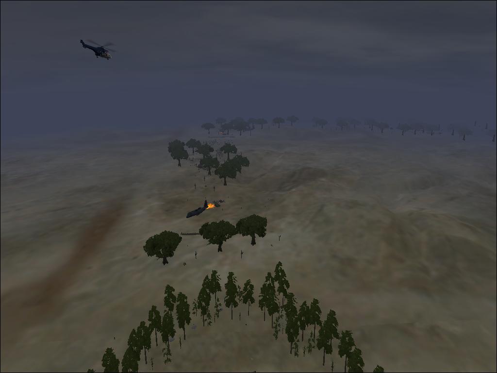UN Aid workers, working along side a Ranger chalk, were ambushed at a small village, code named Objective Orion. One of the trucks has a flat tire, and was hit by an RPG. Provide cover for the Ranger chalk until Medical Team Alpha can converge on the location to evacuate the wounded by chopper.
