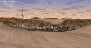 BIG arena around a trench and a couple holes that are filled with water. Lots of places to take cover. A little resting area if you dont want to play, gotta find it first. (easy). Have fun. Please make comments