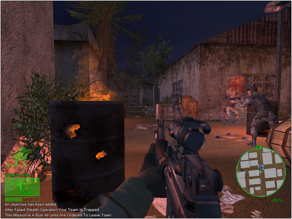 Nice, open desert map with multiple enemies. Long range snipers, as well as CQB fighters will love this one. You have just one support team: Alpha. Stealth is not a priority.