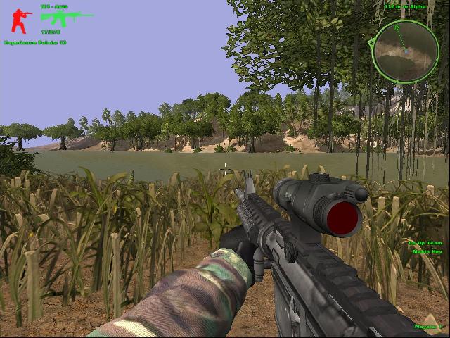 You’re a solo sniper, on a hillside, waiting for the target to arrive. When he does, take aim and fire. Command keeps constant communications with you throughout the mission directing you via the radio. Slay all you can, destroy the SAM and radio equipment. When they are destroyed, BW will arrive extracting you from the mission.