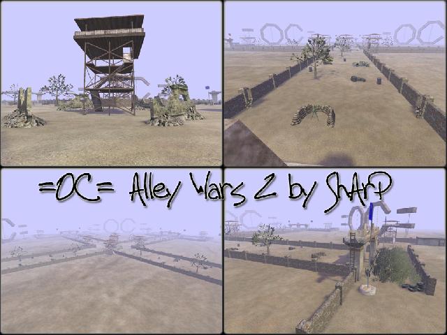 =OC= Alley Wars 2. This map was made from the original Alley Wars map that I have made. The only thing that has really been done is fog added, the =OC= on the ground and accessible by ladder, objects down the center for more coverage, and some coverage in the zone as well as a tower. No sniping on the hills on this one, just try it if you don't believe me. In Flagball all emplacements are taken out and the flag is in the tower. Team Deathmath, Team King of the Hill, Flagball, & Capture the Flag. ENJOY!!