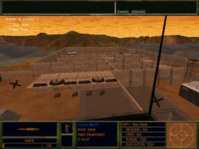 CQC - walled in - 200 m end to end - some sniping possible from hills - if u jump out. Each team spawns inside their own maze, with ladders, platforms, and openings as the exits. Medium sized center area with buildings and more ladders. High paced, high action map. Beware of hands grasping knife's sticking out of the ground (they bite).