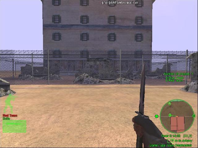 Blue starts in south across the river from red base. two tanks each with usable .50 cals.(Blue Side) bridge. Red base to the north. two small sandbag bunkers with .50 cals. Chainlikned fence surounding base. to the east small town. Medium Fog and trees. for the nazi part of the map.. its just a german controlled town i dunno that was just my idea..hahahaha.. thats my explanationround and no where to hide, so be careful and plz comment!!!!!!!!!