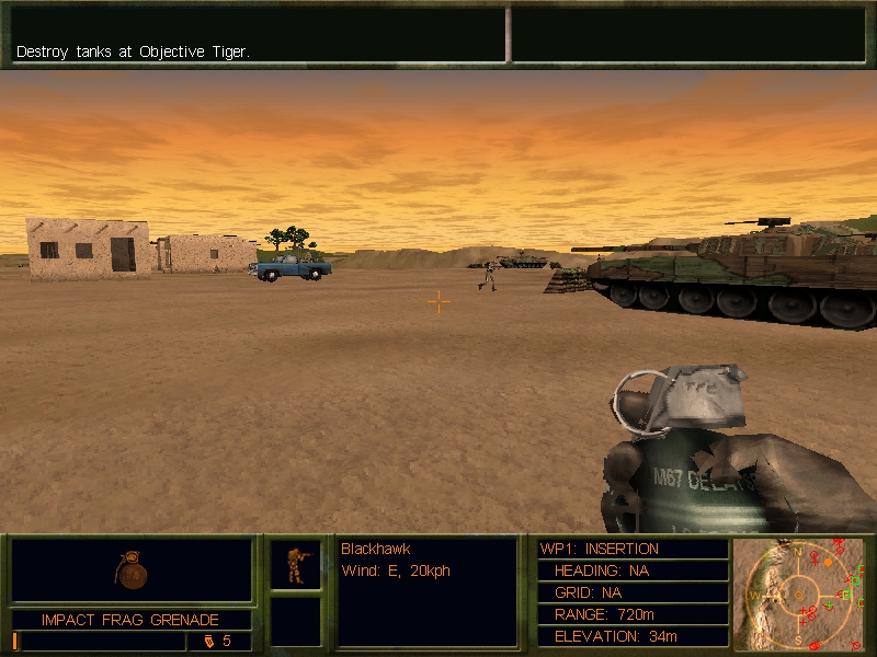 Your job is to get to the building at WP Bravo and free the hostages there. Fire only if fired upon. Don’t get mixed up in the fighting. When the hostages are safe a UN contingent will come and secure the area. You will then proceed to WP Charlie and wipe out the Iranian military advisers and then take out the missile emplacement on the roof. Wait for the SAS to arrive and then go to the hummer and off to WP delta to rescue the marine Major.