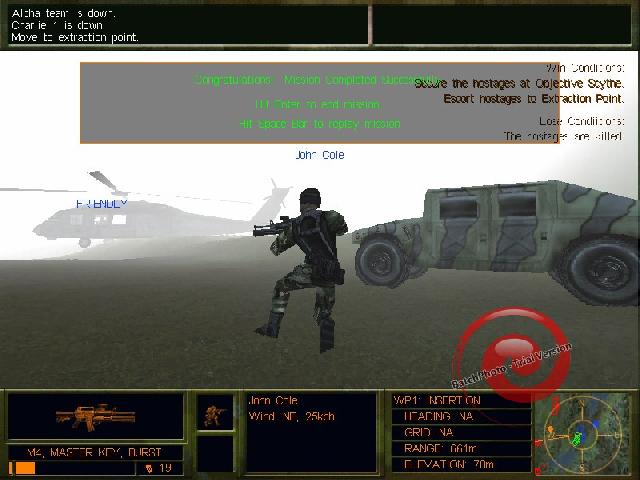 11 november 2001 - 2 months later after 9/11 attacks. An group of tourists was captured by opositing force and they are being held hostages in a swamp 5 km of the Vietnam - Laos border. Your mission is to free and escort the hostages safely to the LZ.