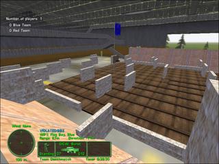 This is a Death Match and / or Team Death Match. The setting is an arctic valley. The hills and mountains surrounding the frozen lake provide some great sniping locations. There are two armories, one for each base. This map can be played as a Team DM or regular death match. During regular Death Match Play the battle takes place within the area of the Blue Base. It is unlikely that you will see the red base during DM play. The red base is just too far for respawns in DM play. However, it is perfect for TDM. Remember, in either game hitting the “W†key will toggle your waypoints.