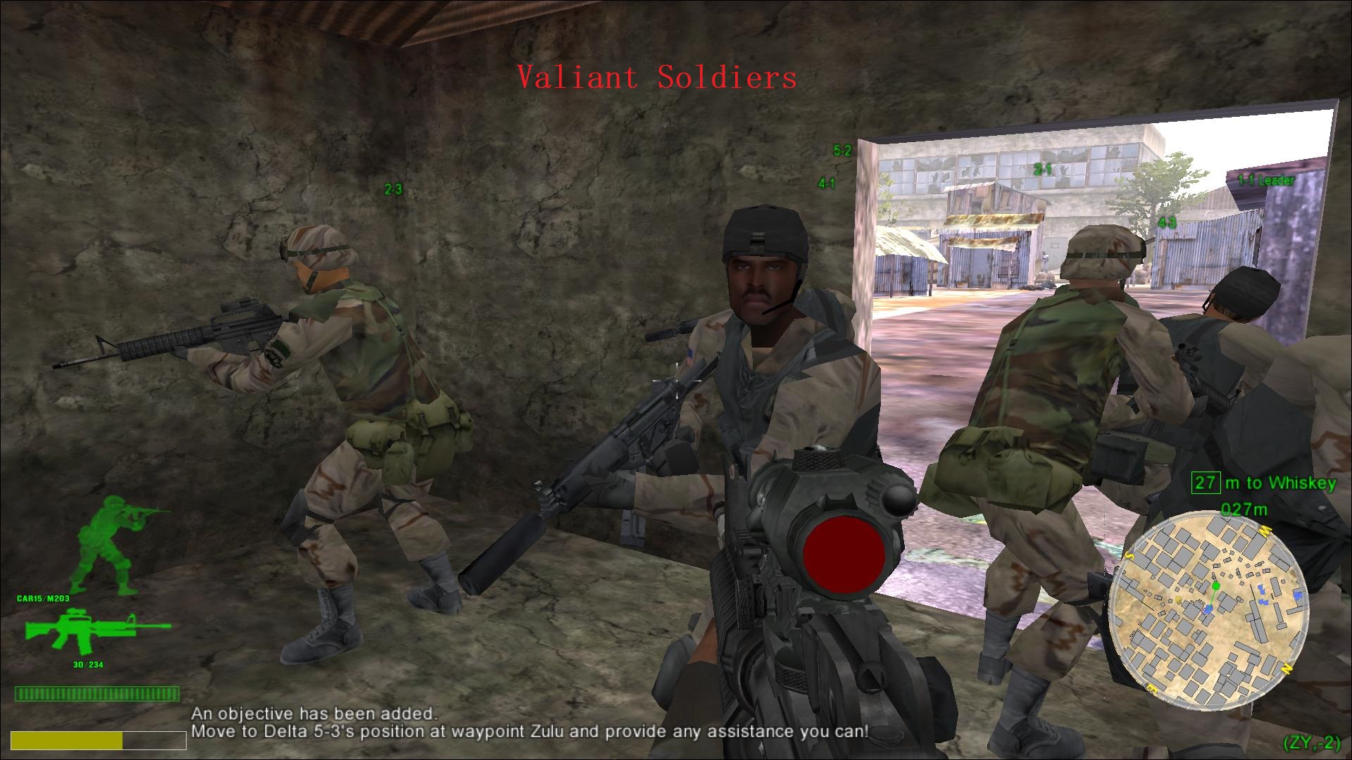 In this mission,you have to rescue many teammates got trapped on the way.I have made "AINames" on these teammates to help you recognize them.1-1 Leader is Falcon,who is the old member of 5-1 team.In the mission Lost Convoy,he served as the leader of 1-1 team to rescue downed 6-1 blackhawk. 5-2 is Preacher,he is the old member of 5-1 team too.In the mission Lost Convoy,he followed Coach(Player Acting) to reach the 6-1 blackhawk crash site.2-1 is Hack,who appeared in mission Bandit's Crossing,River Raid,Gasoline Alley and Besieged.Now he is the leader of Ranger team 2!2-3 is the member of Ranger team 2.4-1 is the leader of Delta team 4 and 4-3 is the member of this team. 5-3 is Mother,he is the old member of 5-1 team too. Schmid is the name of Medic.