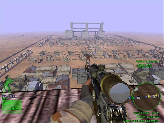 A Big map ! Both bases for Red and Blue Team are exact the same. Distance between both bases is +/- 1000 mtrs. For a quicker way then walking to the enemy base, both teams will have 1 Blackhawk and 1 skiff. Expect loads of detail inside both bases.