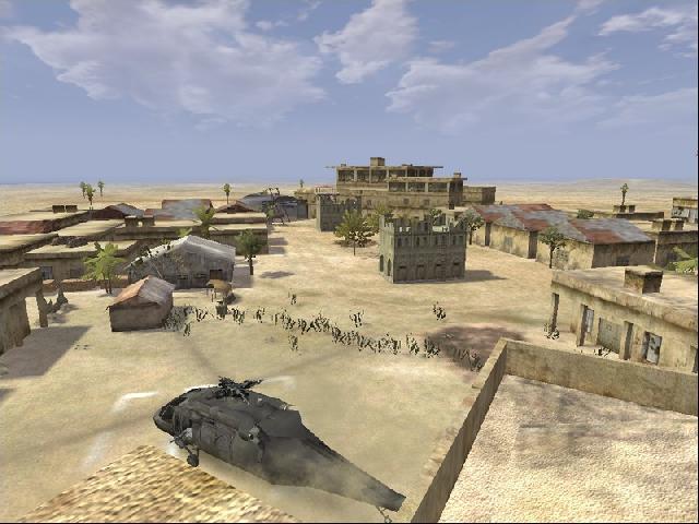 an African General was onboard a Blackhawk but it was shot down by a Rocket Propelled Grenade and crashed in a little city. your objective is to eliminate all hostiles at OBJ BLIZZARD and OBJ VAMPIRE and rescue the General