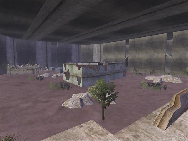 A CQB map made for TKOTH or TDM. There is an outer 'track' and a playground in the middle. The screenshot is of the middle playground. PSP's are on the top of the outer ramp and bottom of the outer track ramps (the entrance to the PSP under the ramp can be seen in the SS as well), and then one in the far back of the middle. 5 PSP's total.