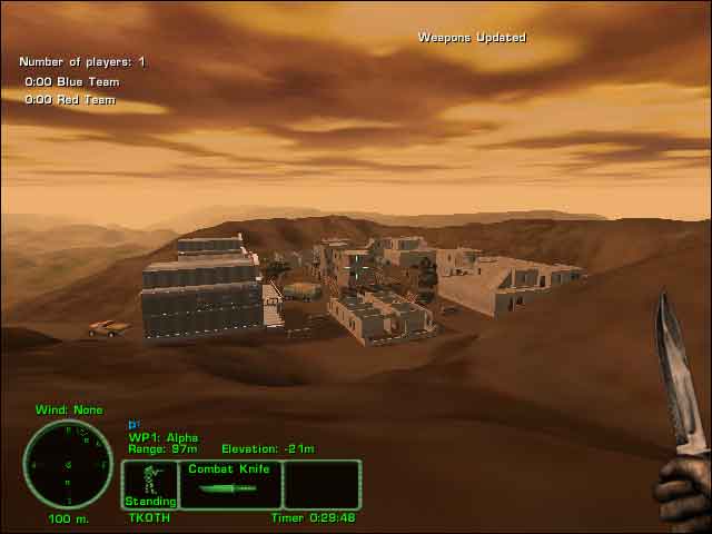 The setting is a fenced compound with a walled-in communications building in the center. Desert bunkers are situated on all four sides of the Comm building. The map is fast and furious but requires a little cunning to score well on. JOIN US FOR GOOD CLEAN FUN IN THE PlayGround#1 Server! THANKS MUMBLEPEG FOR USING MY NAME WHEN YOU WROTE THE COMMENTS!! LOL (My son is biased LOL)