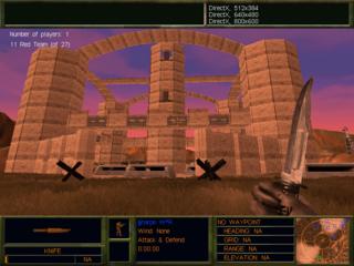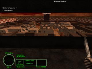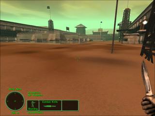 CQC - walled in - 200 m end to end - some sniping possible from hills - if u jump out. Each team spawns inside their own maze, with ladders, platforms, and openings as the exits. Medium sized center area with buildings and more ladders. High paced, high action map. Beware of hands grasping knife's sticking out of the ground (they bite).