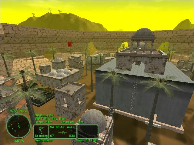 A small CQB Map. Totally enclose with few obstacles. Wall sections for cover with floating walls to detour the use of the OICW and the AT-4. Try not getting DUMPED on in this Map! Have fun.