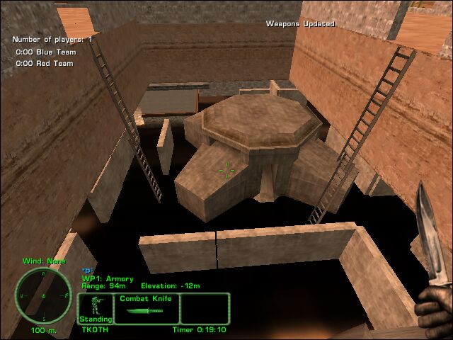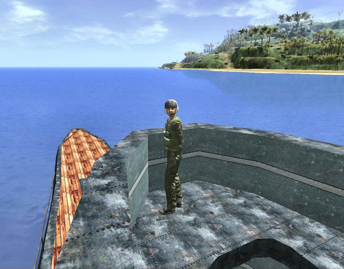 Spawn 50 feet in the air and drop into ocean with aligators, Shoot the other guy as he drops from the sky or just wait and shoot him later Has Deathmath and Team Deathmatch