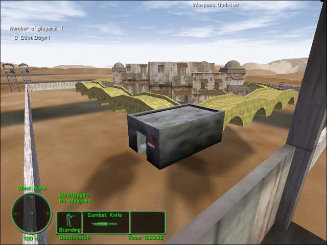 Nice day time open CQB map with lost of space for action. A wall of arces forms a city with on tall tower in the middle. One armory near each team's spawn. Mid-size hills are in the vicinity. Basically a sniper map but the CQB players will also enjoy it.