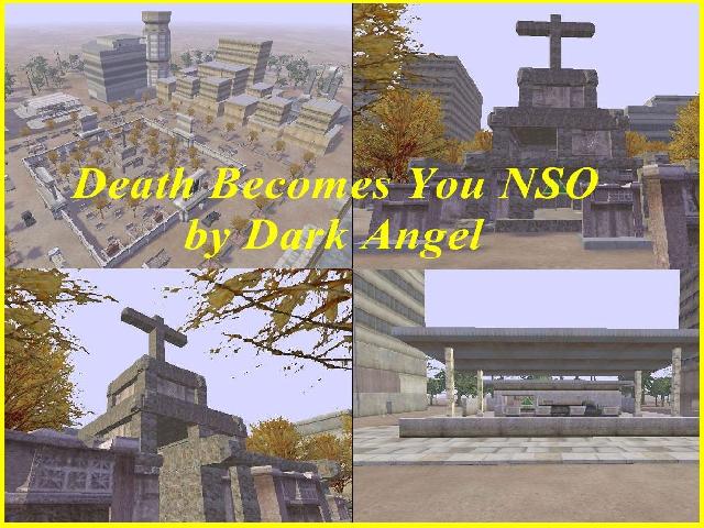 Death Becomes You is Dark Angels first map using the new NSO MOD. There are 3 PSPs on this map, two on the outer edges of the town, and one located in the center building of the cemetary. Plenty of access to the high places around the map.Should play well no matter what size group is active.