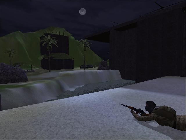 This is a fairly long map and takes several players. You start off on an oil rig and have to storm a nearby beach. After you punch a hole through the defense you will push your way through a series of small bases until you finally reach the weapons storage area.