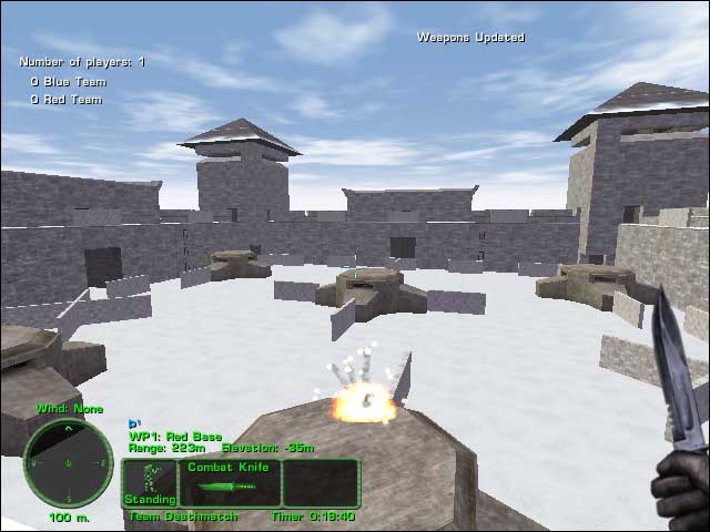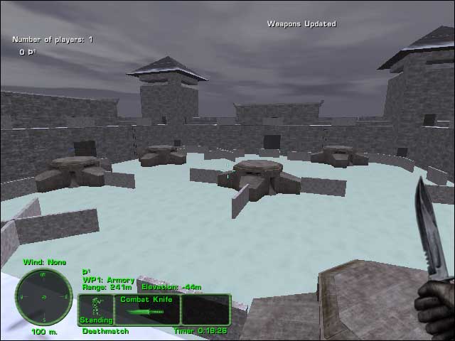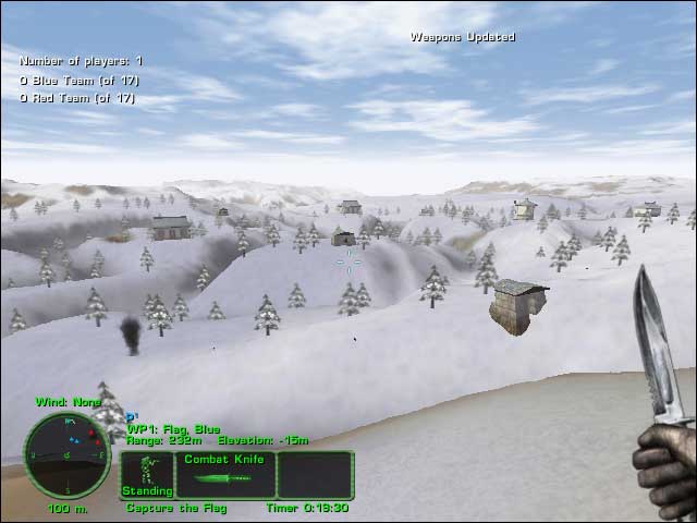 This map is set on a cold gusty snow island, somewhere... The green flag is in the middle, and the flag bay areas aren't too close to the team spawns, which doesn't make it seem like a suicide mission trying to get the flag captured. The ground is quaking, the screen is flashing, and the weather's ice cold - thanks to the .wac file provided.