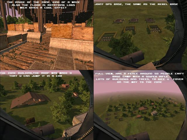 The main building is a custom made log barn/house. gthe roof of the building is a jump Inside there is a maze kind of thing thetre is plenty of cover on the way to the zone from over buildings. and even in big servers u wont run out of veichells . plenty of trees aswell, enjoy