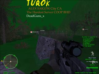 UP-DATE FEB.14/2004. COOP & SP. TUROK has 3 Parts. From part 1 to part 3 & I will try to post all TUROK Series for Coop Players before I Stop posting my maps in TerraNova Mod. All my Coop maps, U Able to play in First BHD mod & TS mod. Just only TerraNova Coop maps, U can not run in TS mod. After all 3 TUROK's maps post here, look for my maps in TS Coop Session. Mission here, destroy Weapon Craste, Generator, Kill the Leader & go to final Wp then go to the Roof take over the Enemy Red flag U will end the game. Hope all have fun & thx to all who enjoy my map