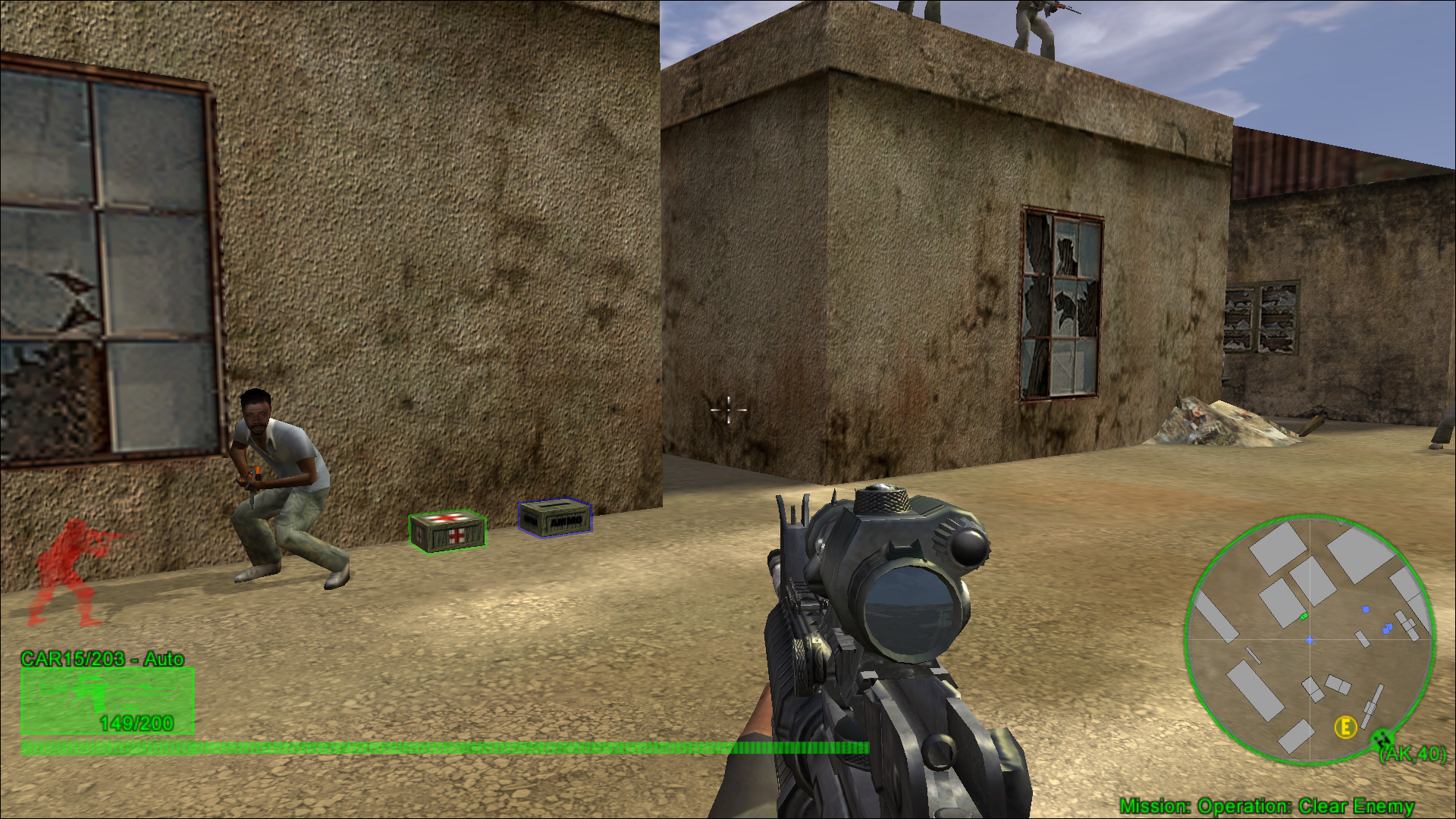 A rescue convoy has been dispatched from base. When it arrives, load the wounded and follow it to a strongpoint we’ve established. Provide cover fire for the trucks and watch for snipers