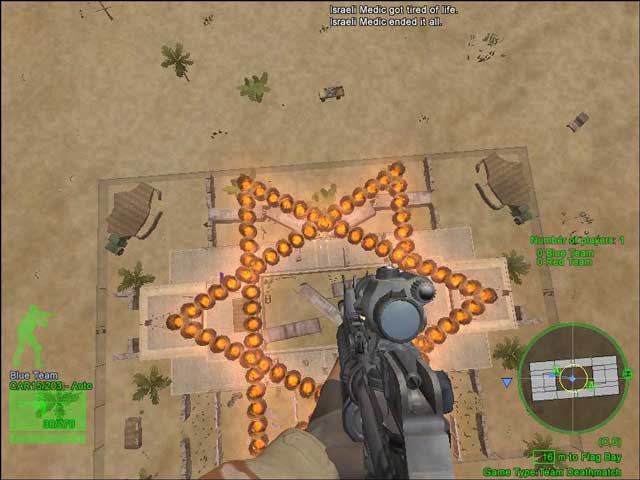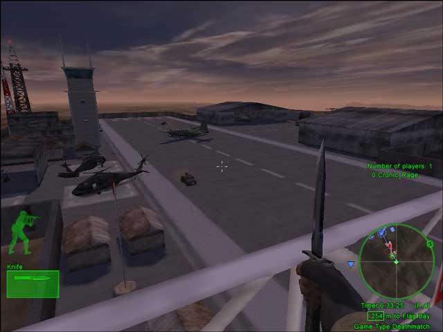 This is a code red! An air field in the Nevada desert has been taken over by machines and it is believed that Alien life forms have taken the remainder of what where the air staff and morphing these men in to their own using rays. You will be parachuted in with the 3rd airborne and you will acompany delta and green beret as you make the assault you will be on the receiving end of heavy fire so it is advised to take the tunnel. Note: please keep to waypoints and clear your objectives if you are successful you will take a flight back to rally with part of your battalion, not many are to return from this one so good luck soldier! Intel shows all com dishes need to be targeted as they are the source of the machines strategic placing, kill all hostile we need to knock these back to where they came from and demolish computers. ps. single player only. UFO courtesy of Death {DD} Thanks, Bitstream(uk)