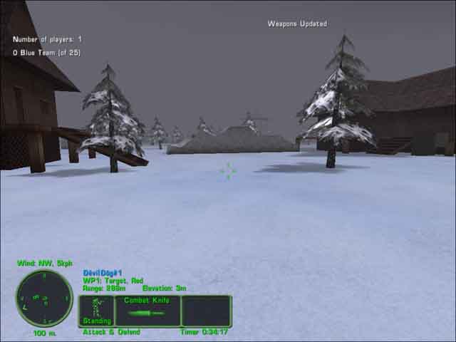 Nice evening map for very fast action. Armories are present. This map has a good mix of around twentyfive hard and soft targets. The base is good size so allow for plenty of time. Designed for CQB but some sniping is possible.