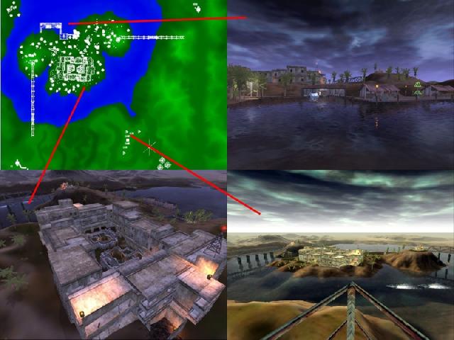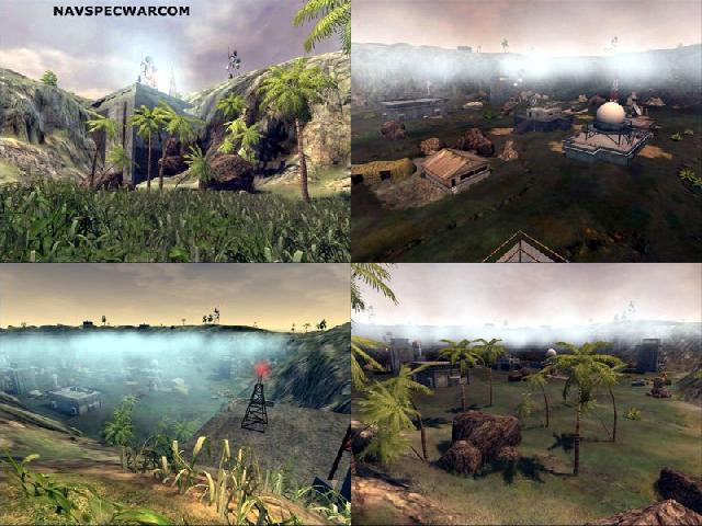 This map takes place on an island and is a multi-level map. It has lots of trees with walkways high above in the tree-tops. It has a multilevel "Zone" and three PSP's. The map was designed for 32 players.