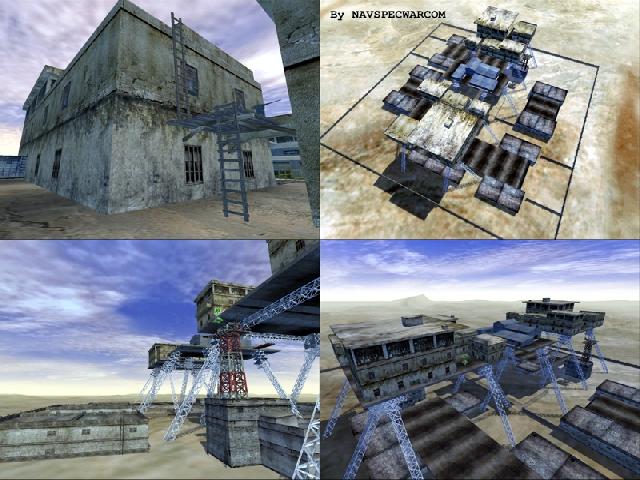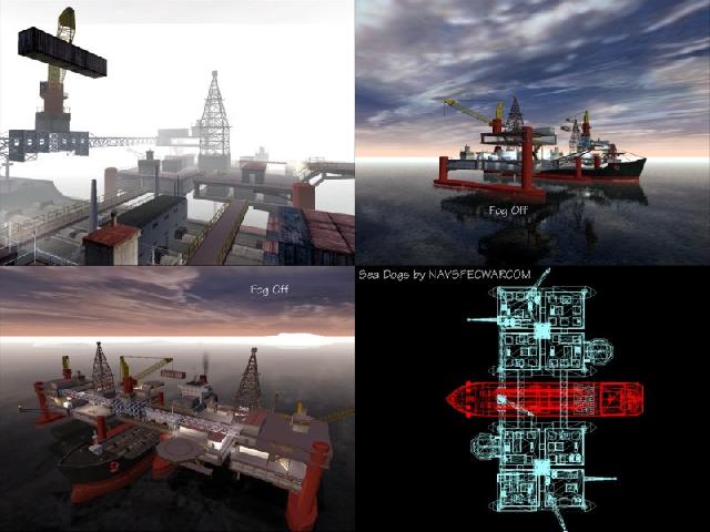 This is a multi-layer map. It also comes in two versions; FB and TDM. There are many places to climb and shoot from. There is a catwalk which circles the playing arena and two boats patrolling the water below. Sure footing is a must, or else it's a long way down. Designed for 32 players. 2 PSPs.