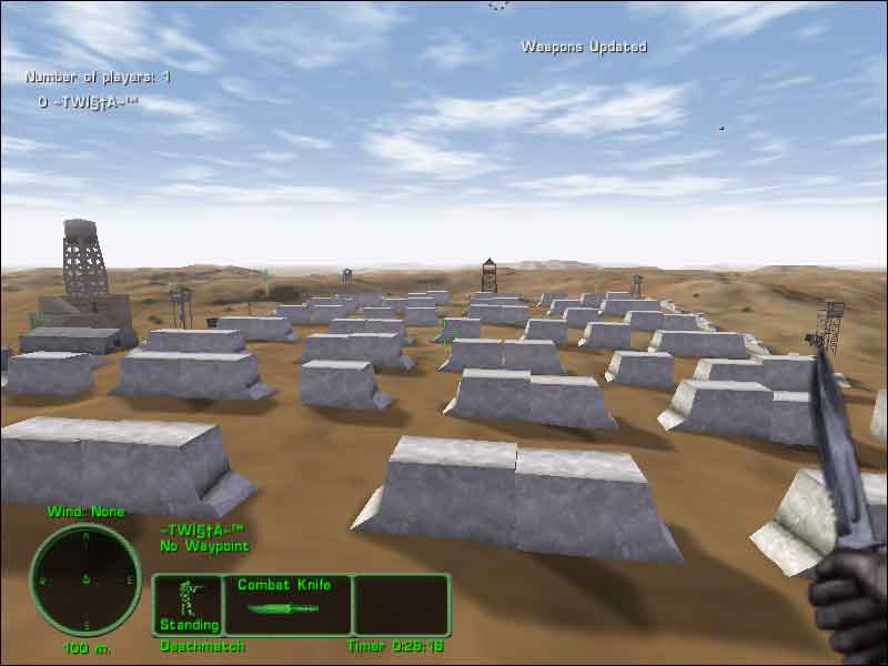 both teams can start off in a box with a armory 2 satelites and a bunker with 1 slit or they can start of on either the west or the east side of the map in a little subsection (shown in the ss bye the camera) kinda thing were they start off behind a chain link fence but theres away around it, then in the middle is some tank jacks a green flag and then 2 get on top of the box 4 some great m4 spots there is a starcase (shown in the ss) plz rate and comment on this map, ty =)