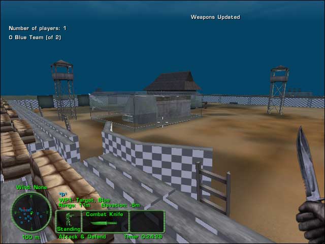 Nice day map for very fast action. Armories are present. Single story buildings, truck, and tents. No way points. Head west to find the target. Designed for CQB but sniping can also take place.