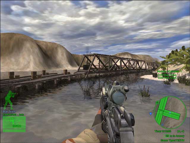 River Map with 3 PSP Markers Some Sniping but mostly close quarters. Destroyable Bridges the zone is in the cargo ship includes armory for both sides underwater battle as well as above ground