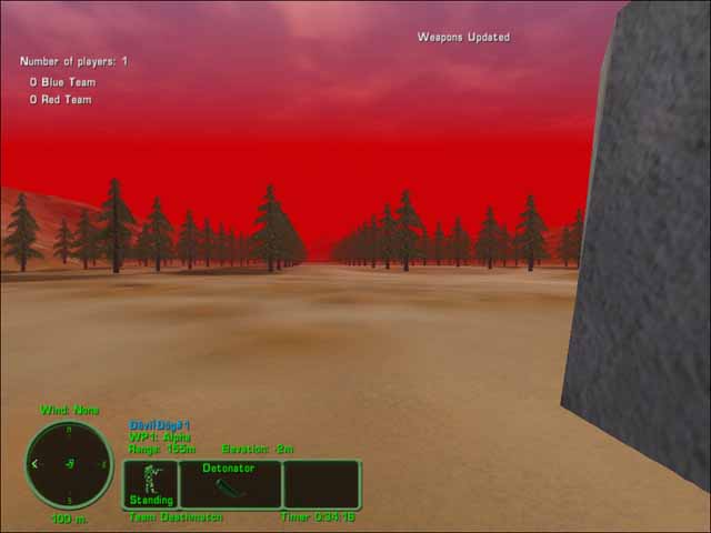 Nice sunset time map for fast action. One armory near each team's spawn. An orchard of Pine Trees, with a light red fog and a hill to the side. CQB and snipers both will enjoy it.