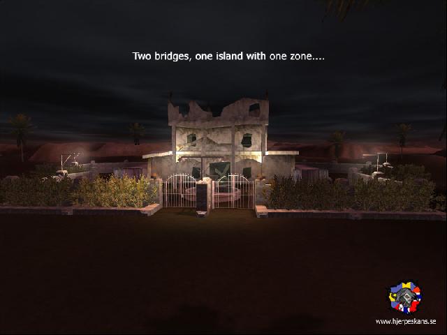 Two bridges, one island and one zone. The zone is in and under a building. Lots of psp's and birdges can be destroyed. This map is from the old [hjerpeskans.se] server.