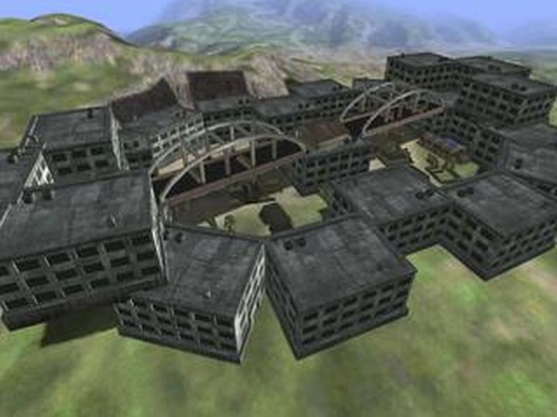 VERY small and enclosed map ... there two levels. The floor and bridge. The floor has scattered buildings and the bridge has walls to dodge round with a building in the middle ... Kool map with lots of action on both levels... Watch out for the AT4s from the upper level when ur on the floor tho!