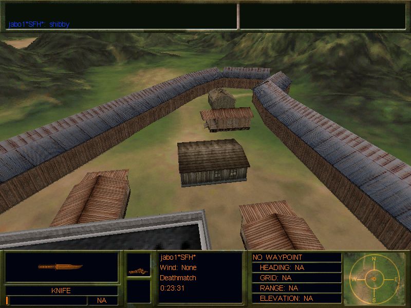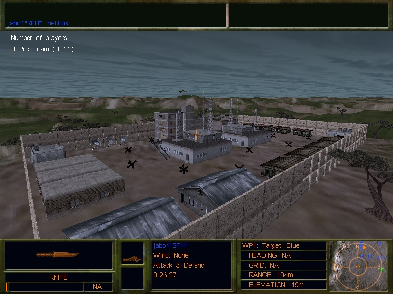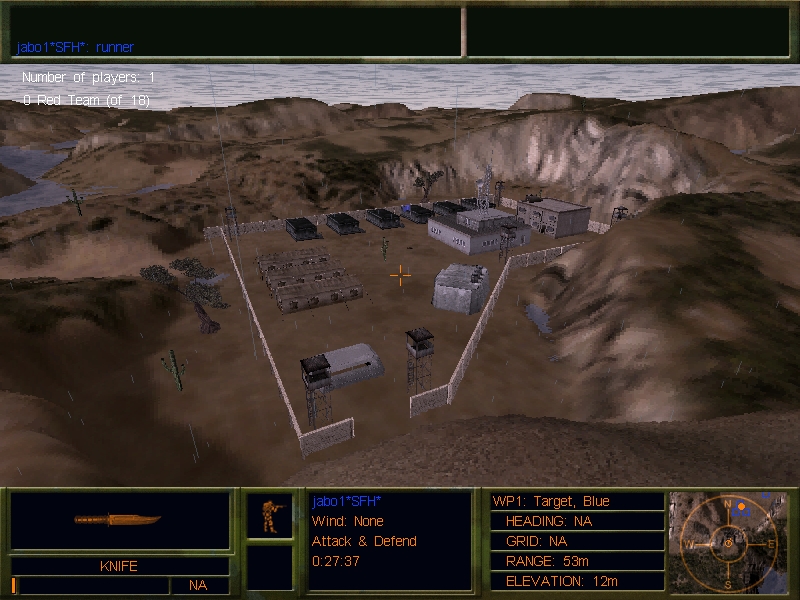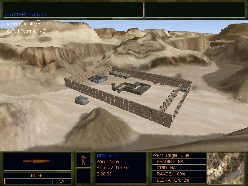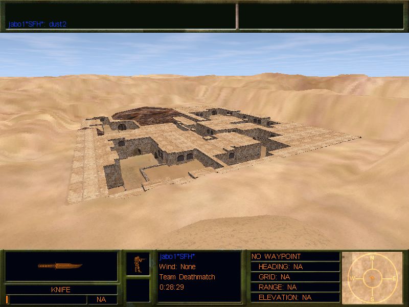 A MAP CONVERTED FROM THE JO:E VERSION, THIS ENCLOSED ARENA IS EXCELLENT FOR CBQ BATTLES. KNIVES AND SIDEARMS WOULD BE THE BEST CHOICE FOR THIS MAP. BOTH TEAMS HAVE EVEN AMOUNT OF SPAWNS AND THEY HAVE SPAWNS ON EACH OF THE 3 LEVELS. ABSOLUTLEY NO LEGAL WAY OUT OF THIS MAP, AND A FEW SURPRISES FOR ANYONE WHO DOES GET OUT OF IT. WE SUGGEST A LIMIT OF 16 PLAYERS IN THIS MAP. ENJOY THIS DFX/DFX2 VERSION!!! yes, load screens do work in DFX2.