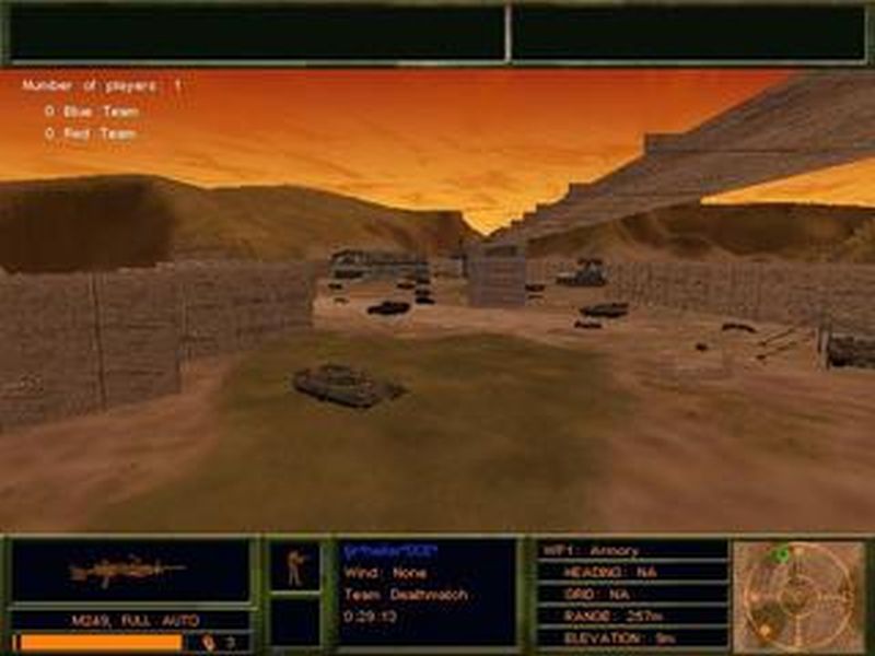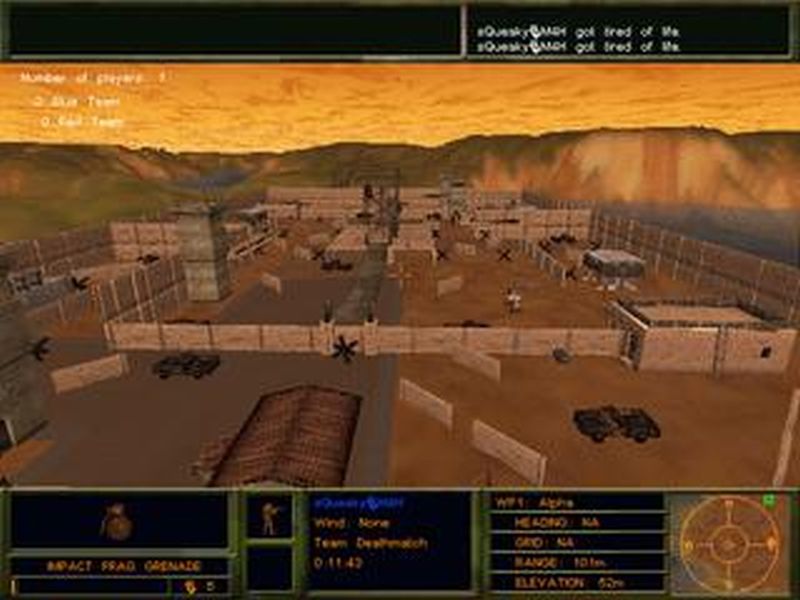 cQc - Arena style map - 200m square - screen shot is with black sky off to give you an overall view of the buildings. Plenty of cover, high and low respawns, mounted 50 cal's.