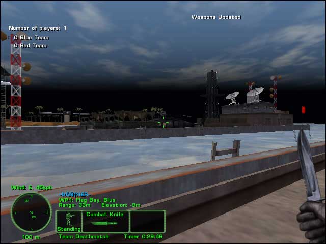 Nice dark nigh map for very fast action. Armories are present. Blocked buildings, war ship cannons, communication tower, surrounded by water, depicting a war ship. Designed for CQB but some sniping is possible.