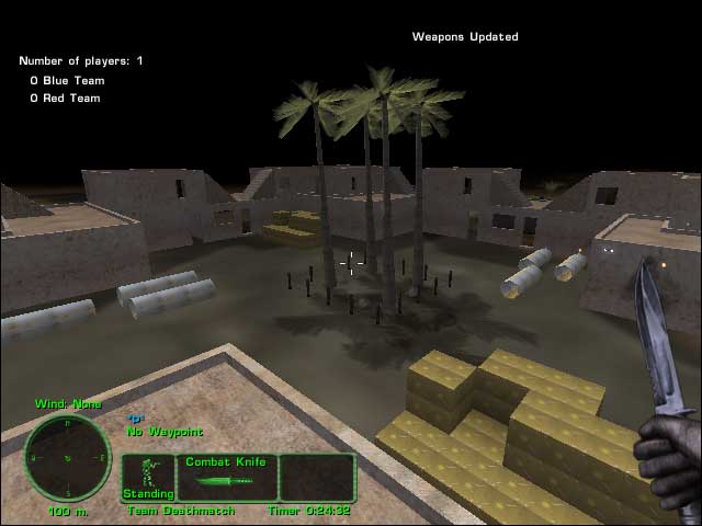 Nice dark nigh map for very fast action. Armories are present. Two three story building back to back, trucks, big decorative rocks, enclosed by a walss, in a valley. Designed for CQB but some sniping is possible.