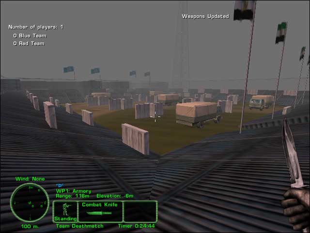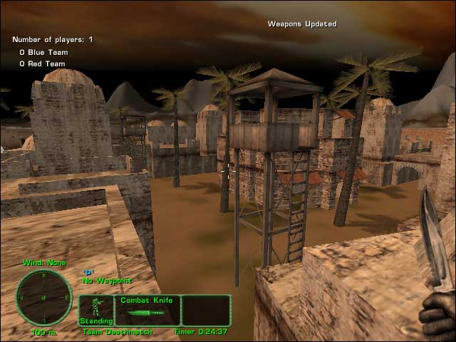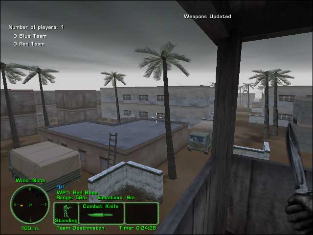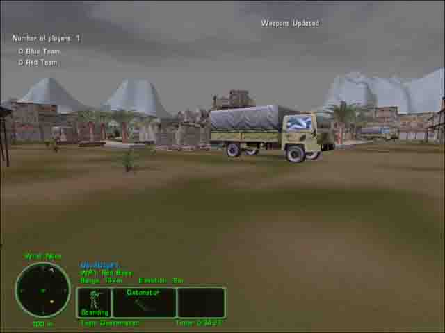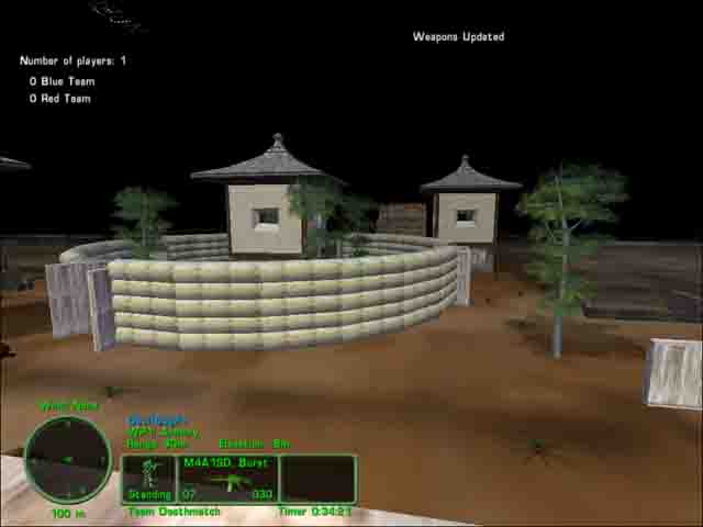 Nice day map for very fast action. Armories are present. Desert buildings, trucks, ruined buildings, enclosed by fence. Designed for CQB but some sniping is possible.