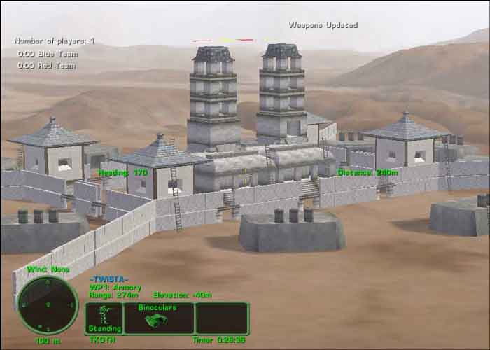 Two parallel castle walls facing one another.. theres a Super Tower in the center of the arena.. and a bunch of walls to hid behind.. ther are also a few fortified bunkers which are about the only safe haven in this level.. Great fun in this map..