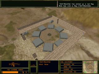 You start out below a platform and there is a spiral 'staircase' that u take up to the platform. There is a pit of stakes inbetween red and blue bases underneath the armory wich is in the midde on a raised platform that you have to take another little 'staircase' to get into. The flag is in the middle as with my other two maps. This is a CQC map. This isnt my best map but it is by far my funnest to play. (Is that correct funnest or is it most fun?lol)[Btw in case u wer wondering ~GLH~BlackOak, ~BOA~Manargra, and ~GLH~Manargra are all the same person....] Have fun and pls rate and comment!